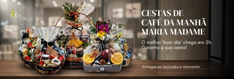 A Maria Madame oferece cestas gourmet e presentes premium com entrega em Sorocaba, Votorantim e região. Nossa curadoria reúne os melhores produtos para cada ocasião: cestas de café da manhã, cestas de chocolates, cestas com vinhos, cestas de vinho e aperitivos, cestas de vinho e chocolates, cestas de cervejas, cestas de aniversário, cestas de aniversário infantil, cesta de aniversário para namorado, cestas românticas, cestas luxo, cestas mais vendidas e cestas de presente.
